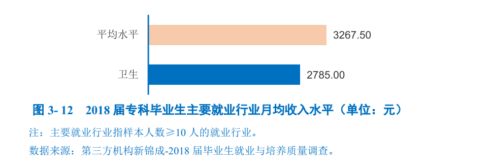 主要就业行业领域月均收入:在“卫生”行业就业的专科毕业生月均收入为2785.00元。