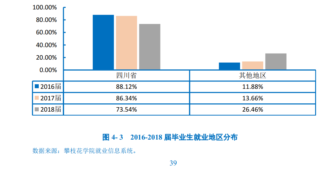 学校2018届毕业生以四川省生源为主,所占比例为92.62%, 省外生源占比
