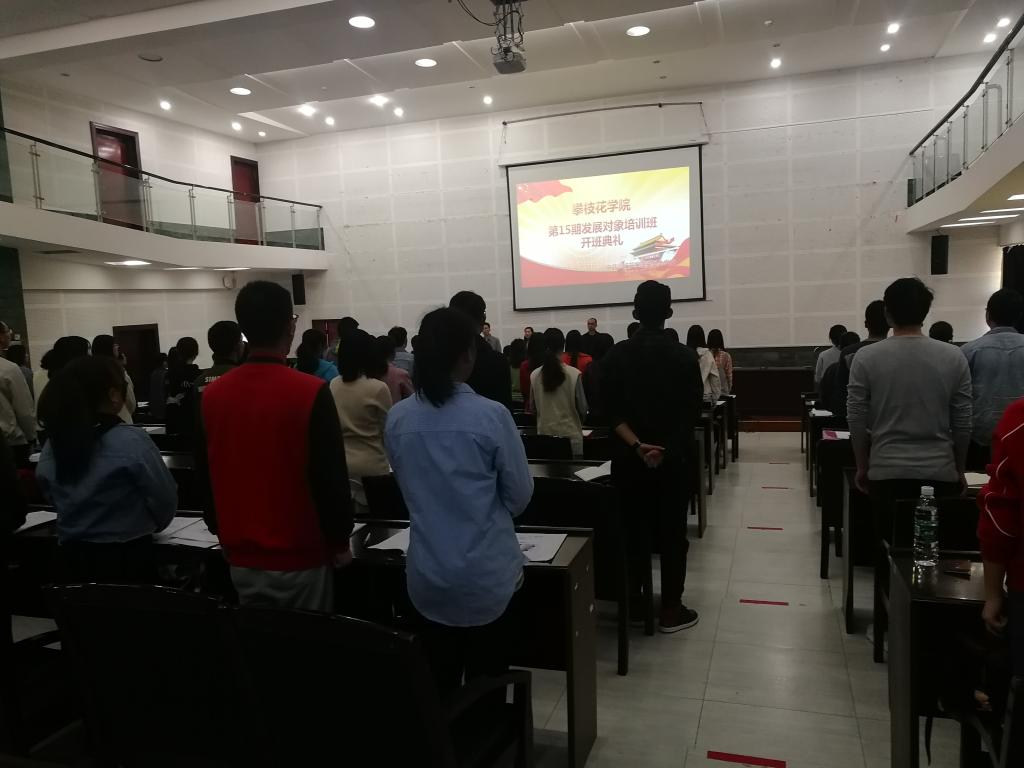 3月16日上午,我校第15期发展对象培训班开班典礼在图书馆二楼学术报告厅举行,学校人才办主任兼组织人事部副部长李东、培训班班主任、78名培训学员参加了开班典礼。