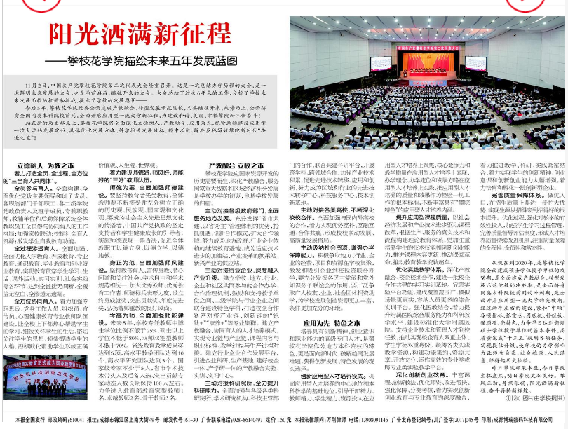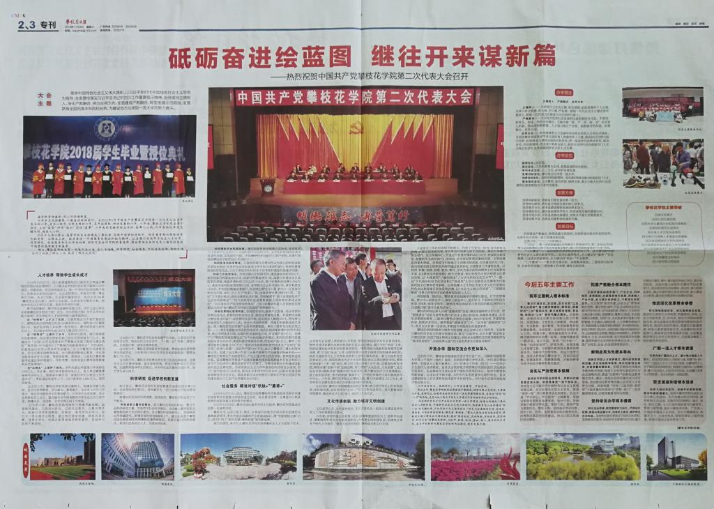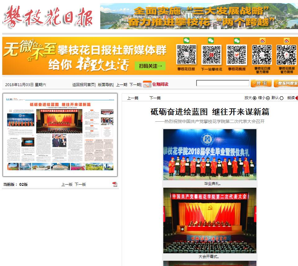 攀枝花日报 :11月3日第二、第三通版以《砥砺奋进绘蓝图继往开来谋新篇》为题报道我校第二次党代会顺利召开