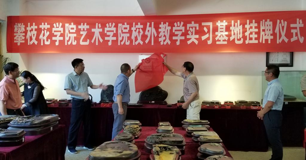 4月20日上午,我校艺术学院校外教学实习基地挂牌仪式在南山工业园区罗氏石艺研究所举行。校党委书记肖立军、副校长刘立新、艺术学院领导以及仁和区文广新局党组书记、局长曾绍奎,罗氏石艺研究所董事长罗春明等参加活动。肖立军、罗春明共同为实习基地揭牌。