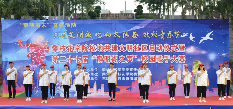 4月21日晚,在学校科技广场、静明湖畔,以“共建文明城 唱响太阳谷 放飞青春梦”为主题的攀枝花学院校地共建文明社区启动仪式暨第二十七届“静明湖之声”校园歌手大赛在青年志愿者代表们的手语表演和宣誓中拉开序幕。活动由校党委宣传统战部主办,校团委承办,并得到了东区炳草岗街道阳城社区的大力支持。