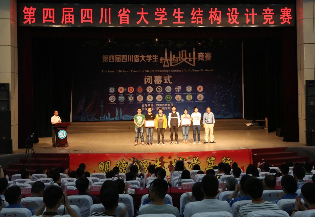 4月15日下午,由四川省教育厅主办、我校承办的第四届四川省大学生结构设计竞赛在我校圆满落幕。西南交大、西南交大峨眉校区获“结构组”一等奖,成都理工大学工程技术学院等4所院校获二等奖,四川师范大学等6所院校获得三等奖;西南科技大学、攀枝花学院获“岩土组”一等奖,西华大学等4所院校获得二等奖,成都理工大学等6所院校获得三等奖。烟台大学和重庆大学获特邀参赛奖,西南交通大学、西南科技大学获优秀组织奖。