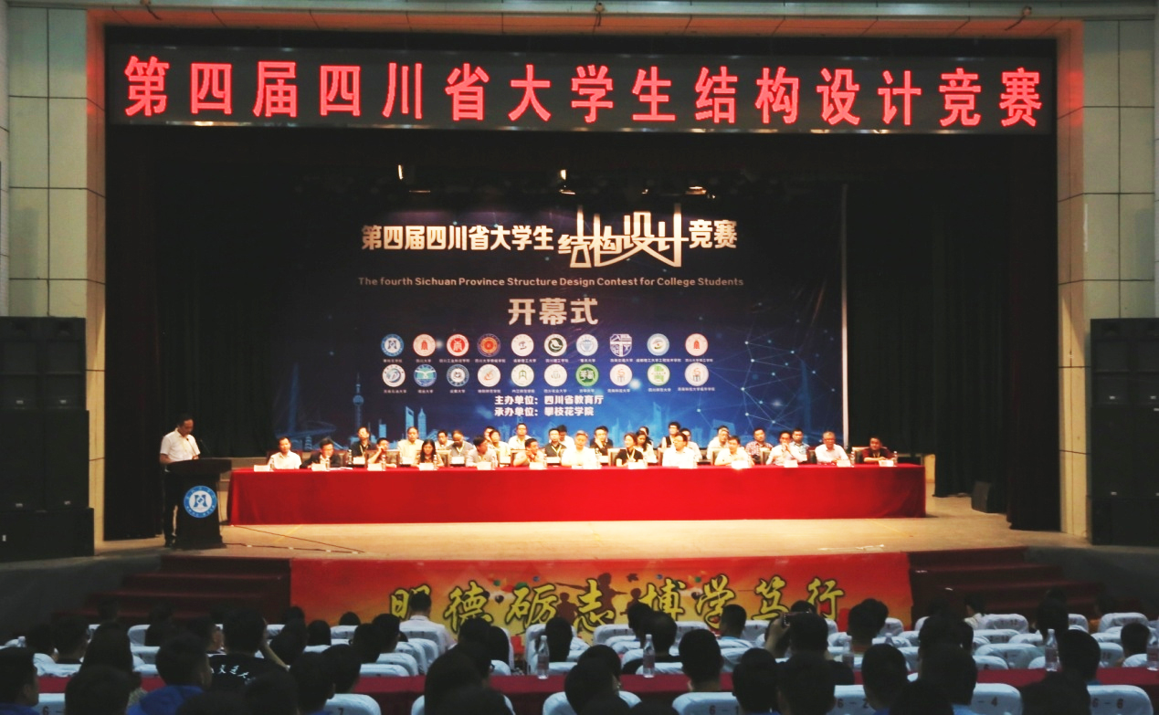 4月13日下午,由四川省教育厅主办、我校承办的第四届四川省大学生结构设计大赛开幕式在学校会堂举行。第四届四川省大学生结构设计竞赛组织委员会、专家委员会、执行委员会相关成员及来自四川大学、西南交通大学、四川农业大学、重庆大学、攀枝花学院等22所高校的师生代表参加开幕式。学校党委副书记、校长王曙光致欢迎辞并宣布竞赛开幕。