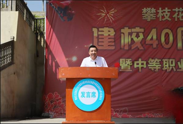 校党委副书记胥刚出席庆典并讲话。他指出,40年校庆,既是发展史上的里程碑,更是继往开来、开拓创新的新起点。他希望,攀枝花市高级技工学校师生要顺势而为,智谋发展;要鲜明定位,深化改革;要理清思路,主动融入。同时,他寄语全体与会人员,一起携手前进、砥砺奋斗,以崭新的姿态、昂扬的斗志,书写新时代职业教育发展新篇章!