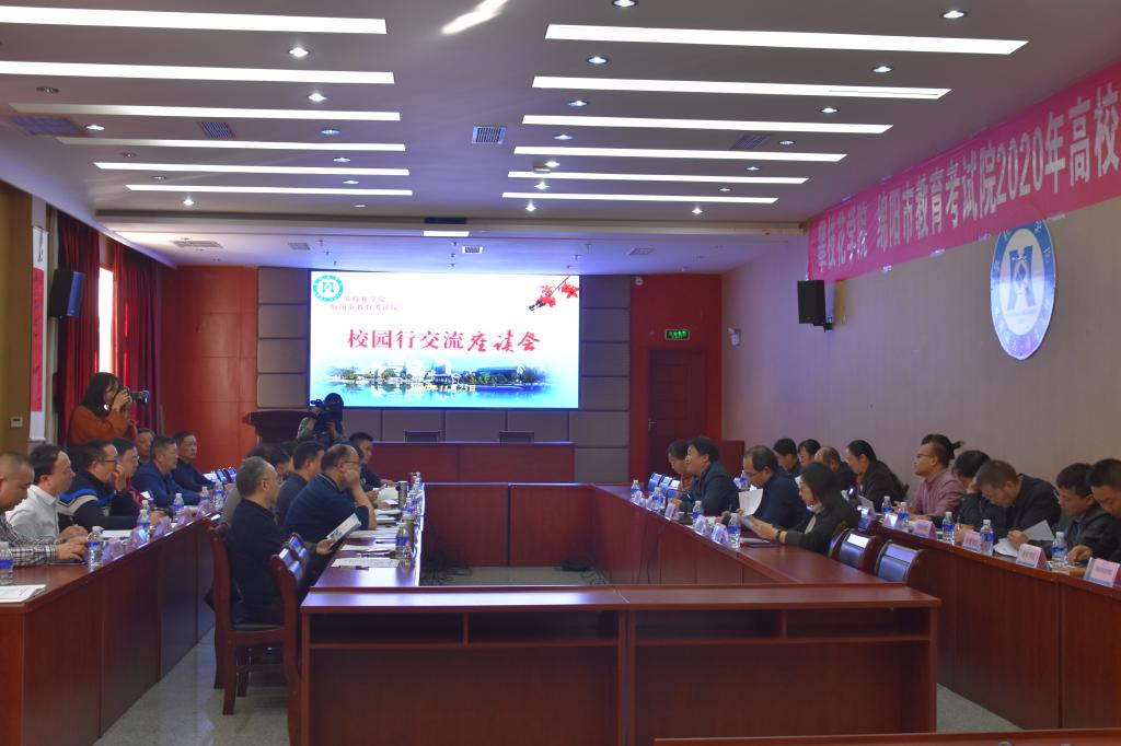 11月25日下午,绵阳市教育考试院院长黄阔仲等一行来我校交流,这是绵阳市教育考试院高校校园行的第三站。我校在行政楼四楼附楼会议室举行了交流座谈会。副校长刘立新出席座谈会,教务处、学生处、创业学院、各二级学院负责人,招就处全体成员及绵阳籍学生代表参加座谈会。