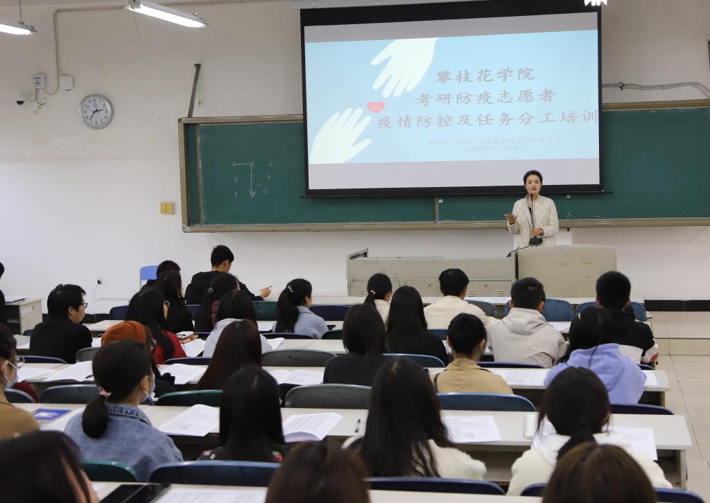 12月23日中午,我校在第二教学楼2-2召开了研究生招生考试攀枝花学院考点防疫志愿者疫情防控及任务分工培训会。来自校级九大组织共计150余名学生志愿者参加培训。