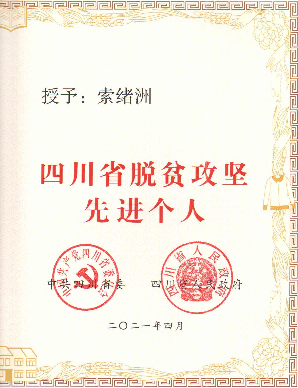 3月15日,攀枝花市授予我校脱贫攻坚工作“集体记功”奖励,王茂蛟、吴成兵、杜昊等9名驻村、驻乡干部被授予“脱贫攻坚先进个人”。4月22日,四川省脱贫攻坚总结表彰会上再传来好消息,电信学院副教授、热郎宫村驻村干部索绪洲被授予“四川省脱贫攻坚先进个人”。至此,自律攀大人的光荣榜上又增添了11块亮闪的脱贫攻坚荣誉奖章。
