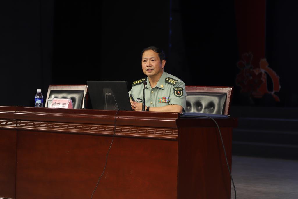 根据《教育部办公厅关于组织开展2020年度军事课骨干教师巡回授课的通知》有关安排,在省教育厅的统筹协调下,6月22日晚,教育部军事课骨干教师巡回授课专家组成员、国防科技大学董晓军教授在学校会堂作《国际战略格局与中国周边安全》专题报告,学校党委书记王斌,学生工作部(处、武装部)全体人员,全体辅导员和学生代表共计700余人参加讲座。