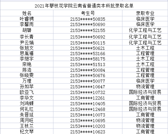 我校云南普通类本科批录取圆满结束:普通类本科批计划招收21人,投档21人,录取21人。文科录取9人,最高分537,最低分485,平均分518。理科录取12人,最高分524,最低分490,平均分502。具体录取名单如下: